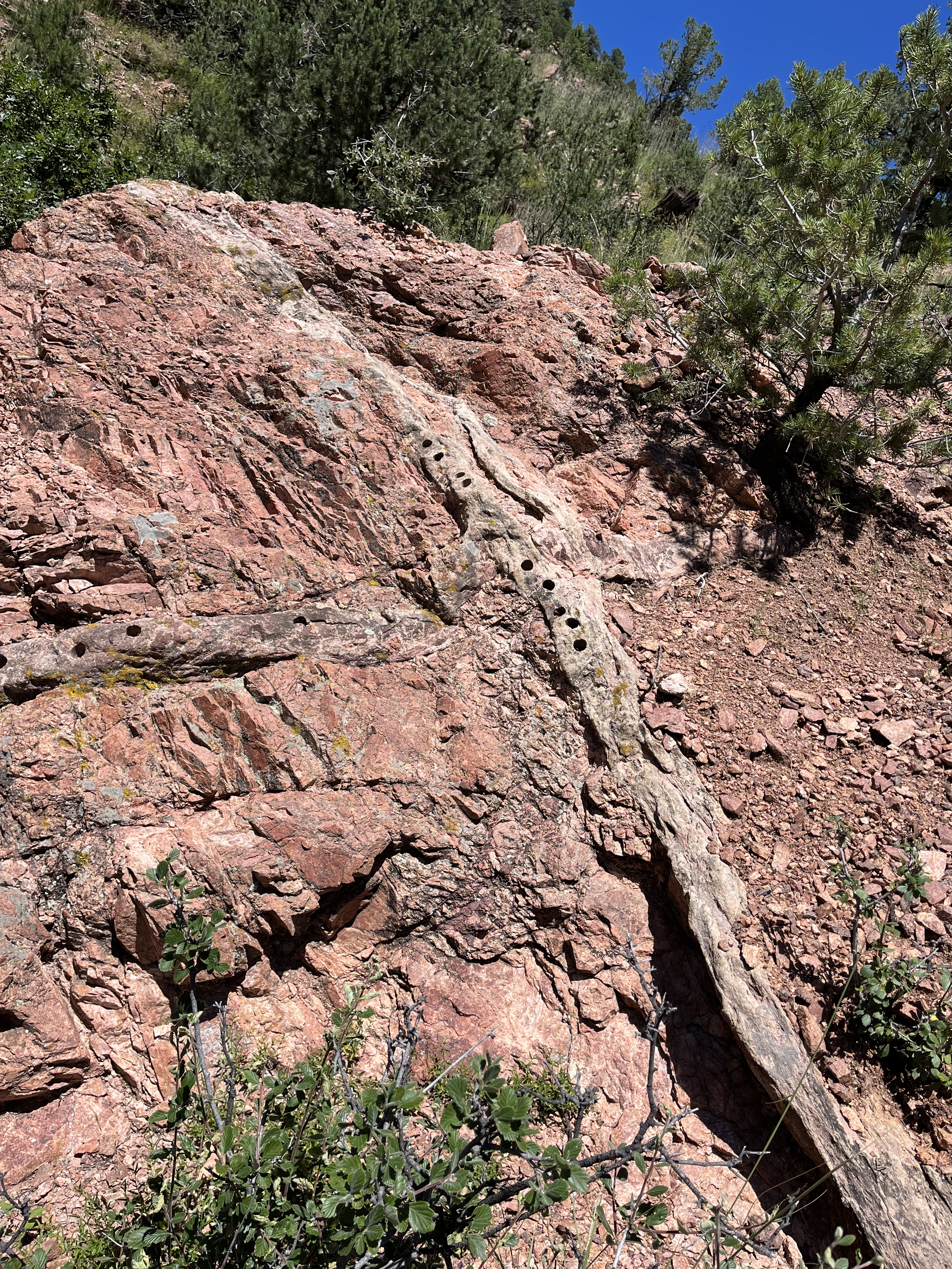 We visited outcrops of the Great Unconformity and spatially associated sandstone dykes around Colorado Springs.