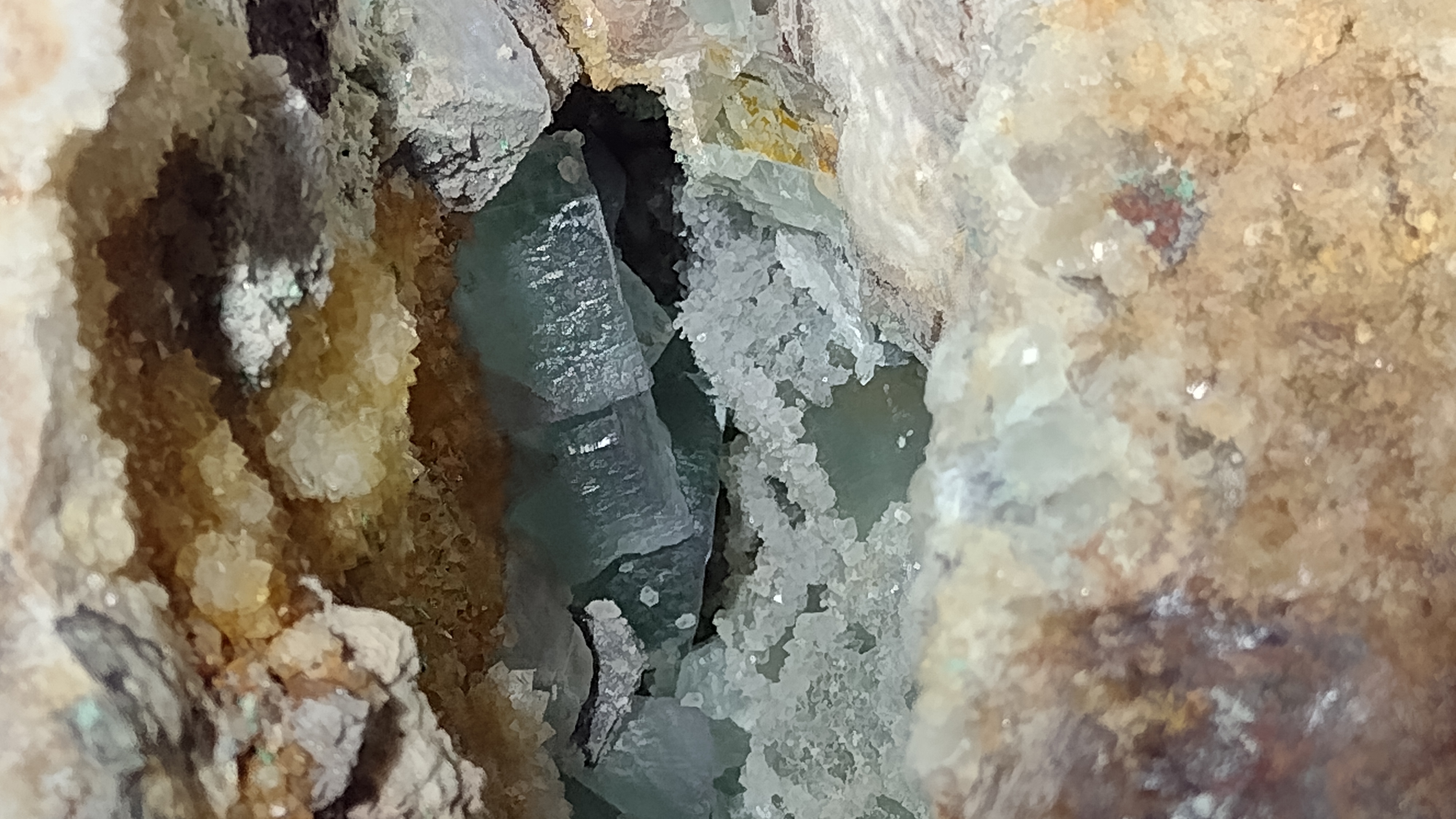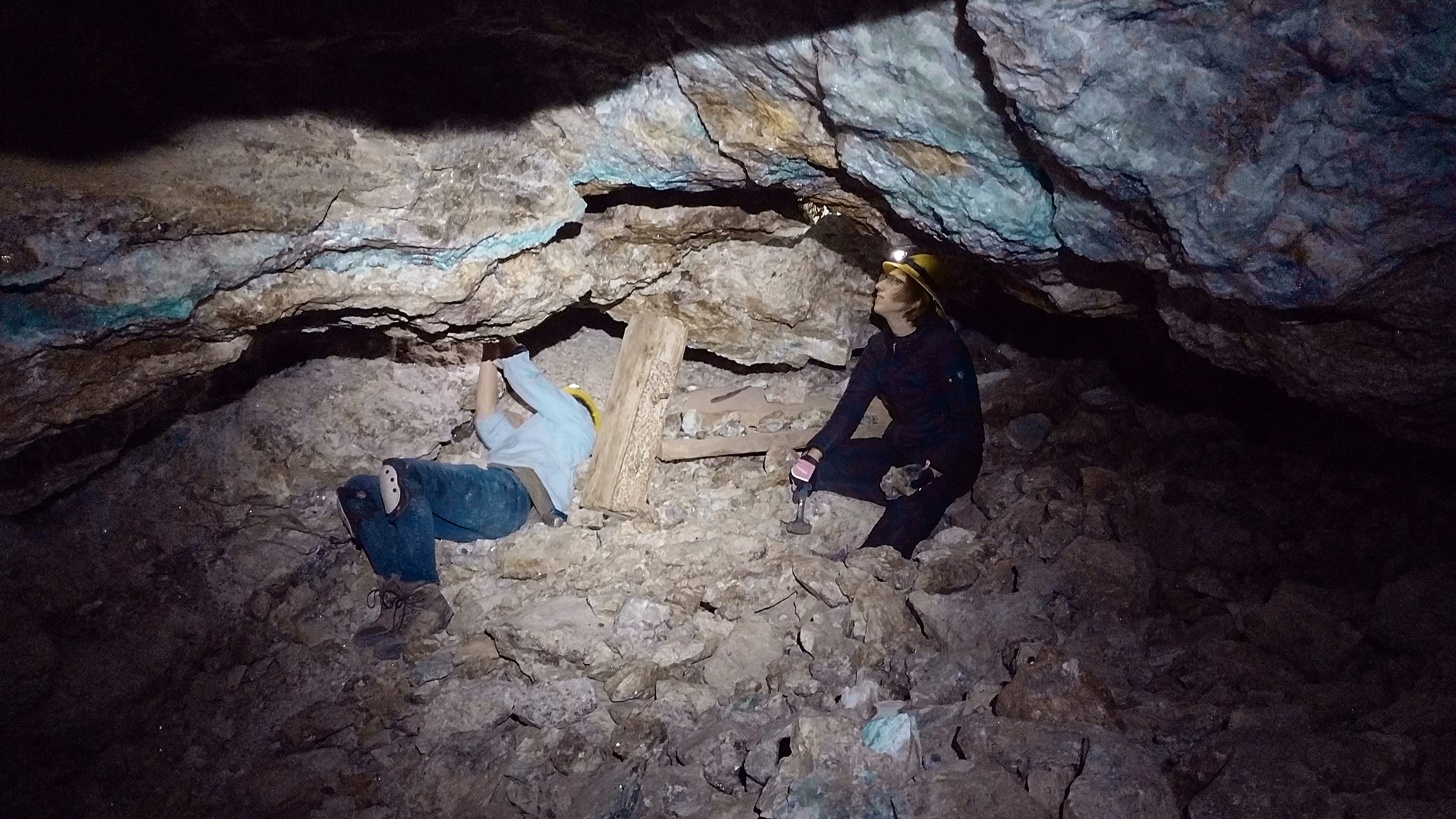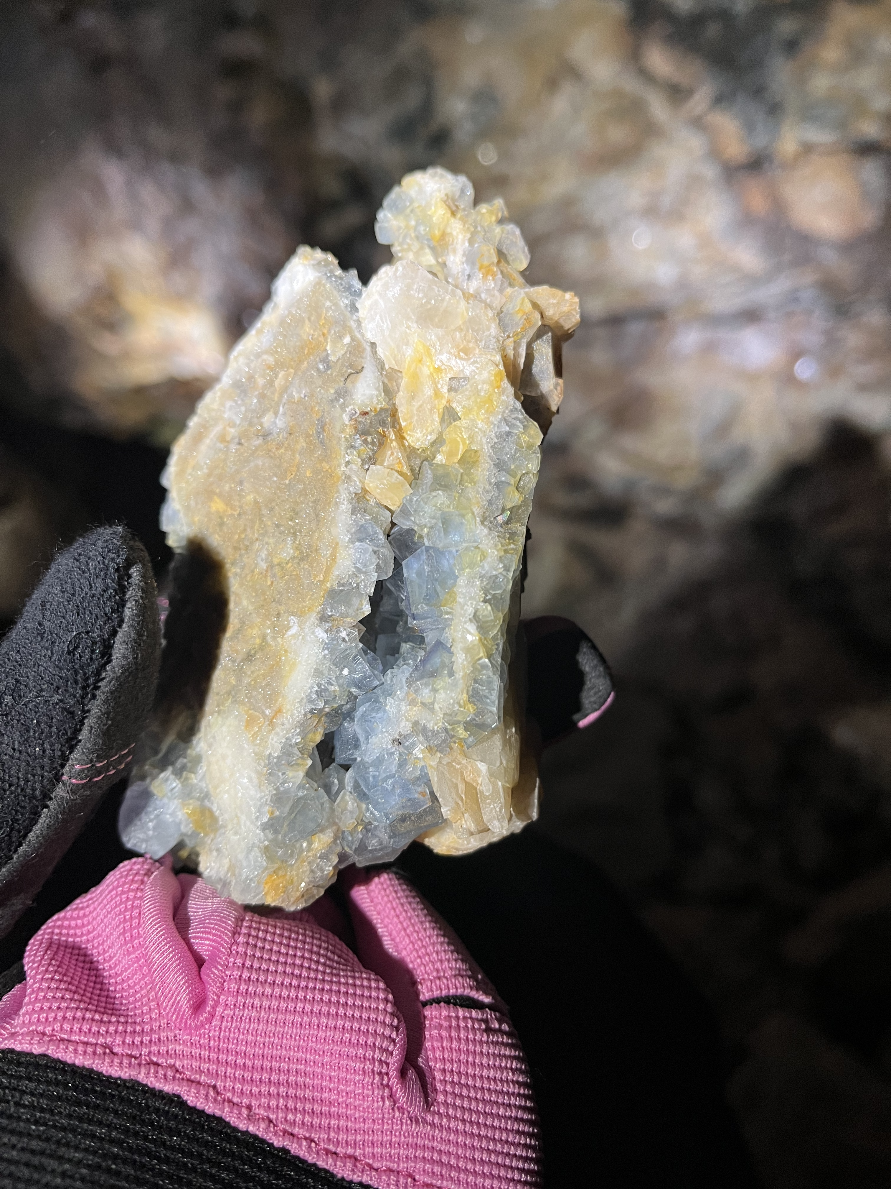Hansonburg mines, bright blue fluorite vein above